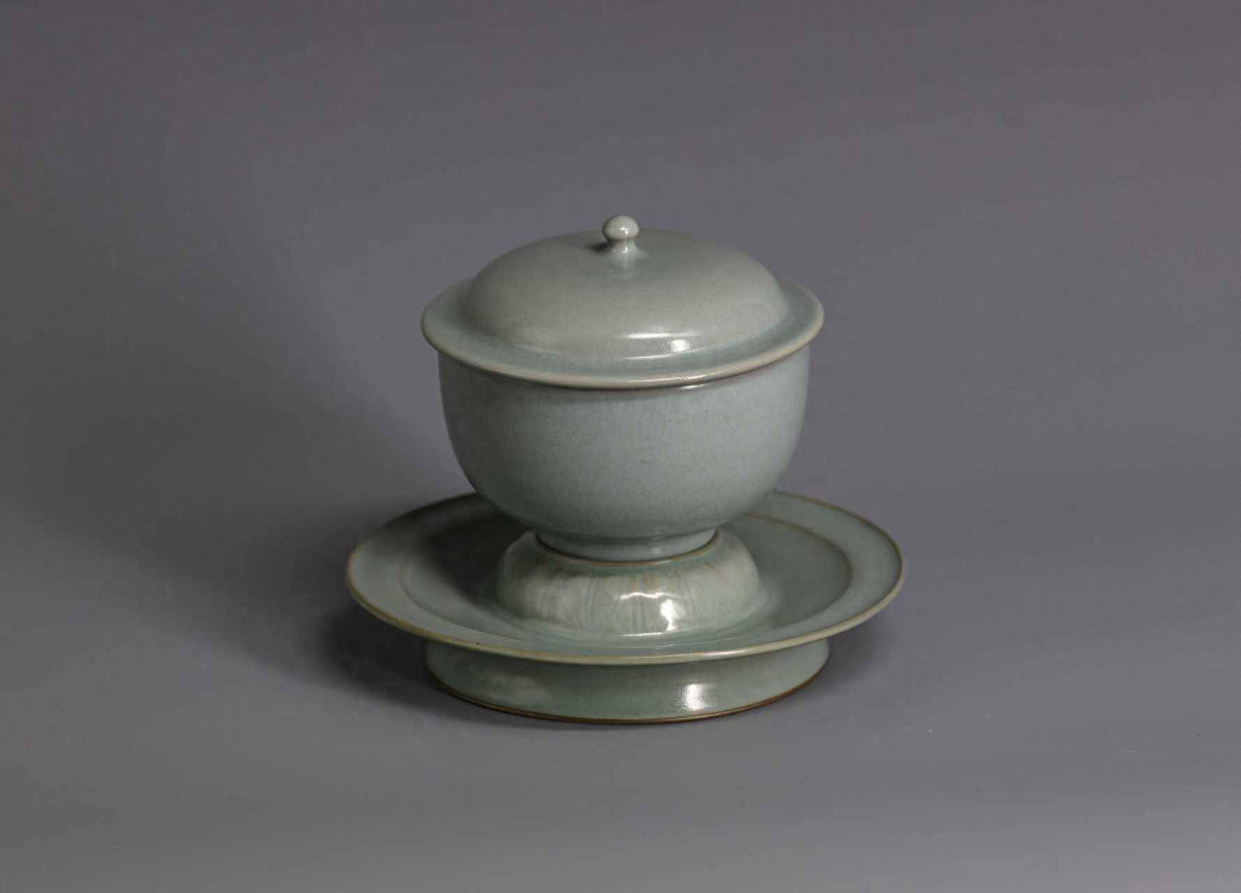 九谈宝瓷展厅展示的汝瓷作品(部分)。